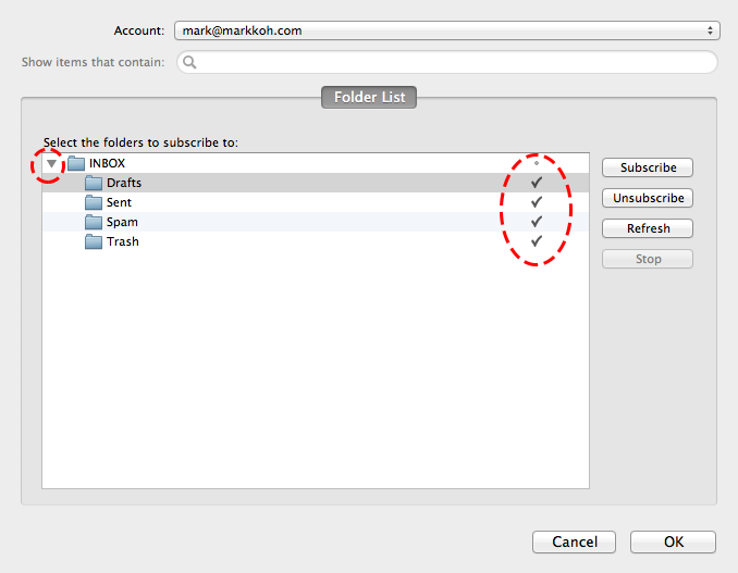 - Click on "Manage folder subscriptions"