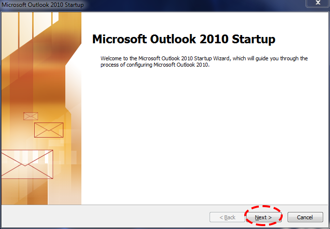 - If this is your first time starting Outlook 2010, you'll see this. Click Next